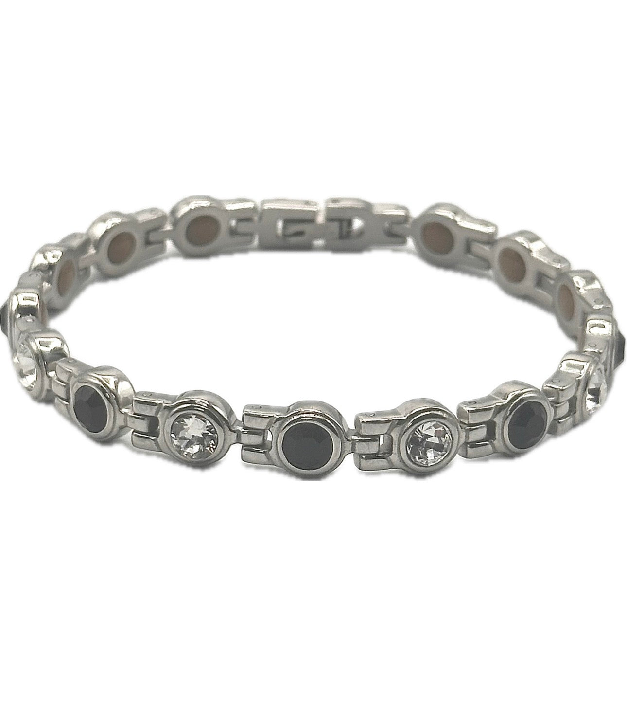 Every crystal is placed by hand, ensuring precision, symmetry and a premium finish that mass-produced pieces cannot achieve. The bracelet presents a clean, architectural rhythm with a sharp, refined brilliance balanced by the depth of the JET stones.